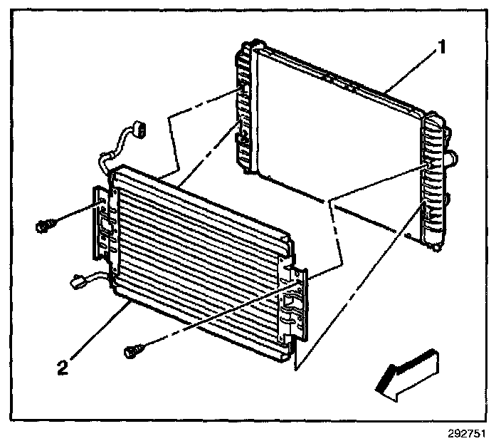 5. Remove the condenser (2) from the radiator (1).