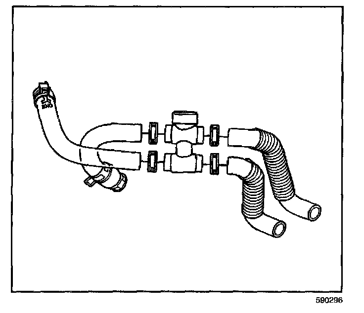 3. Remove the clamps and the heater hoses from the heater water flow control/bypass valve.