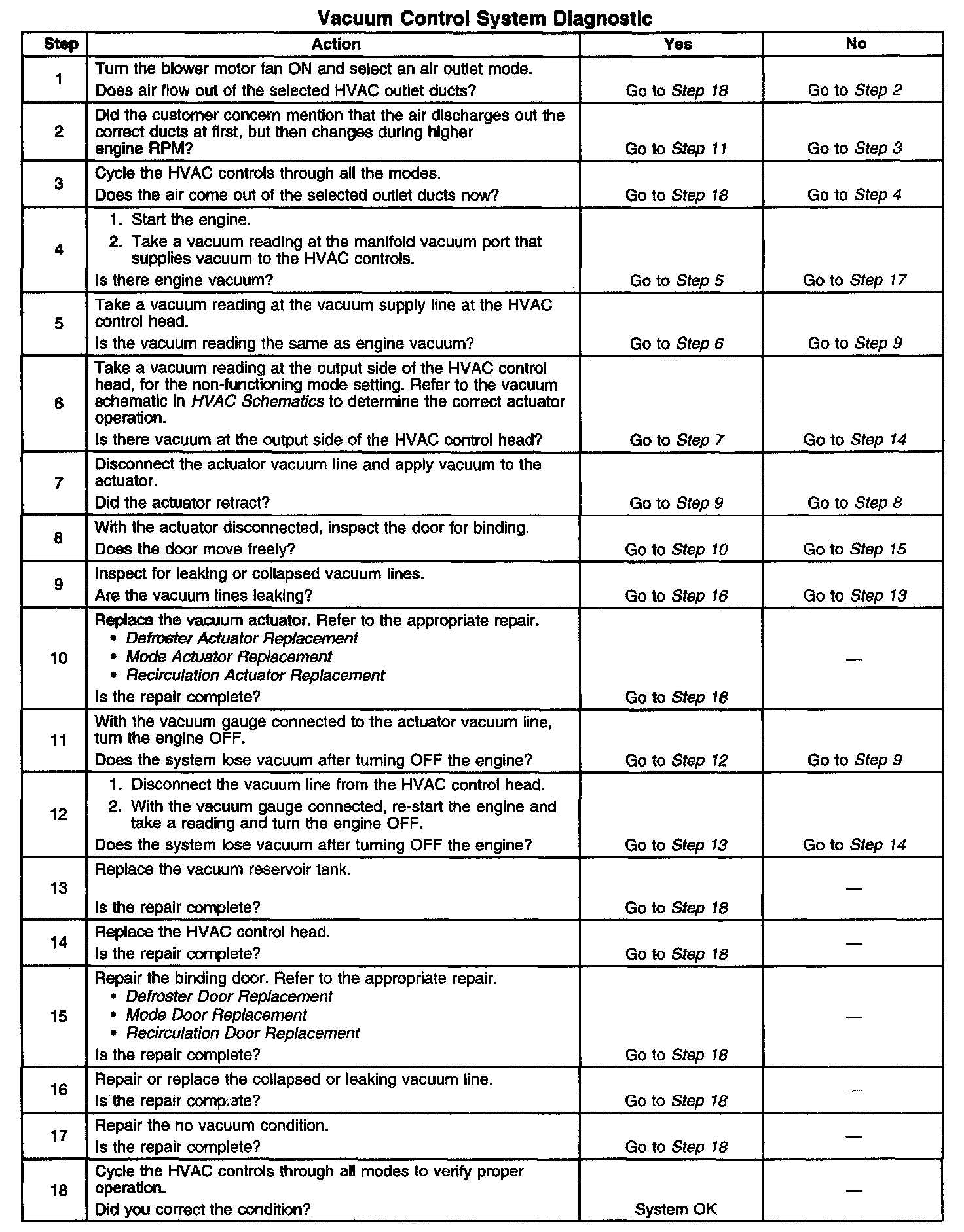 Vacuum Control System Diagnostic - HVAC System - Manual