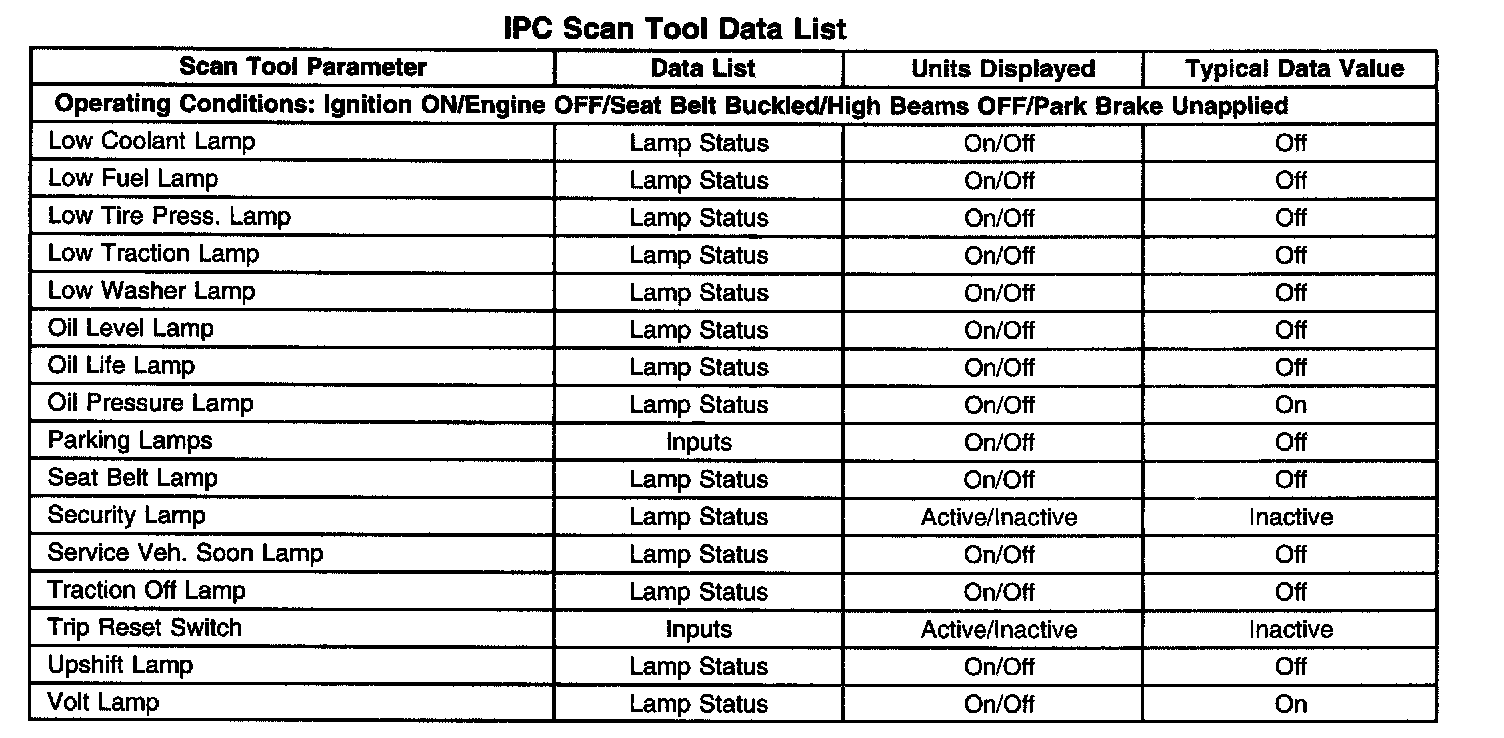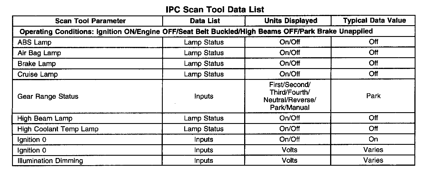 Scan Tool Data List - Instrument Panel Cluster (IPC)