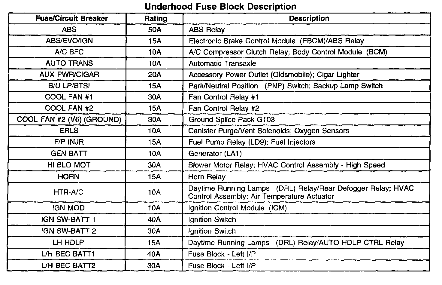 Underhood Fuse Block Label: