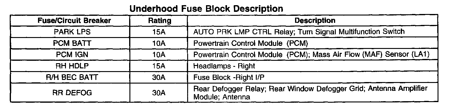 Underhood Fuse Block Description (Part 2 Of 2):