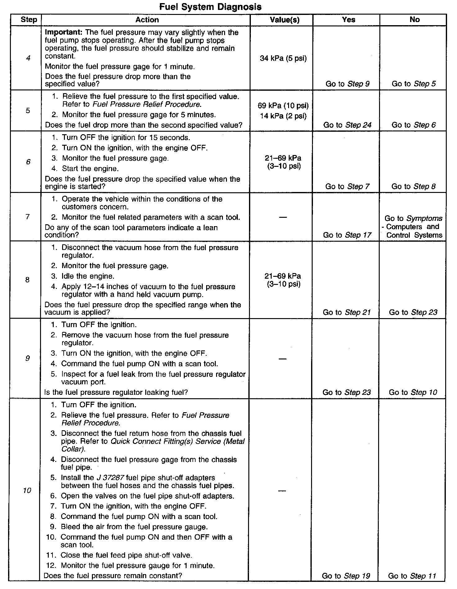 11. This step tests for a leaking fuel injector, or fuel pressure regulator. If the fuel pressure remains constant during this test, the fuel injectors are not leaking fuel.