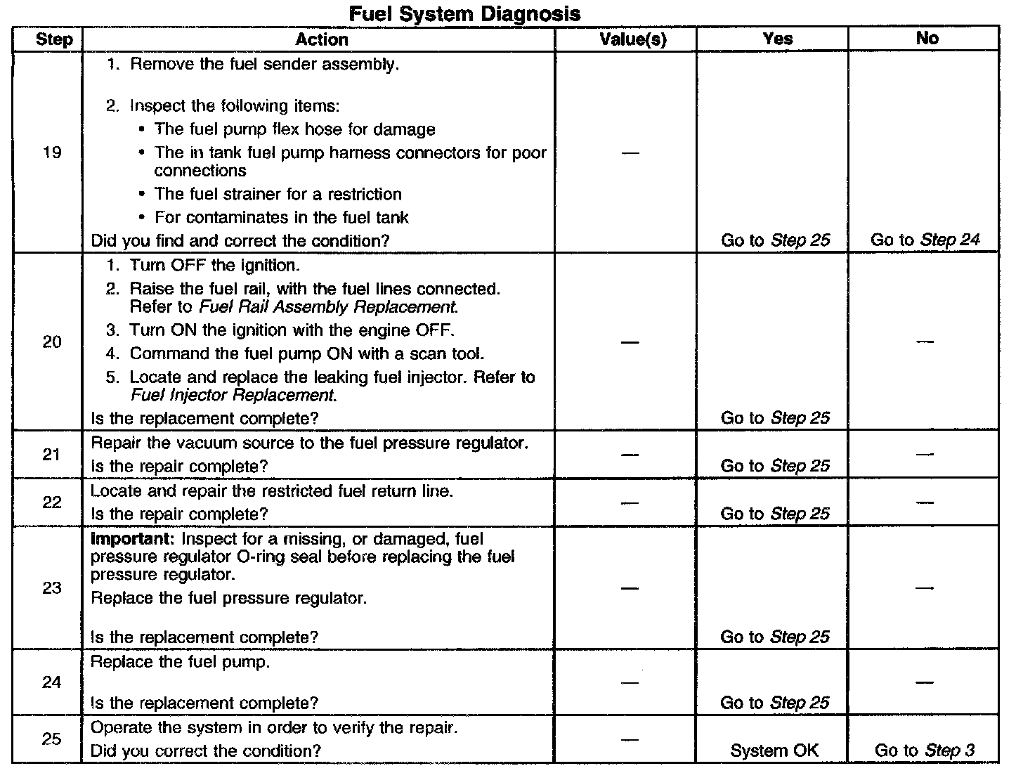18. This step verifies that a circuit condition is not the cause of a fuel pressure concern. Inspect all fuel pump electrical circuits thoroughly.