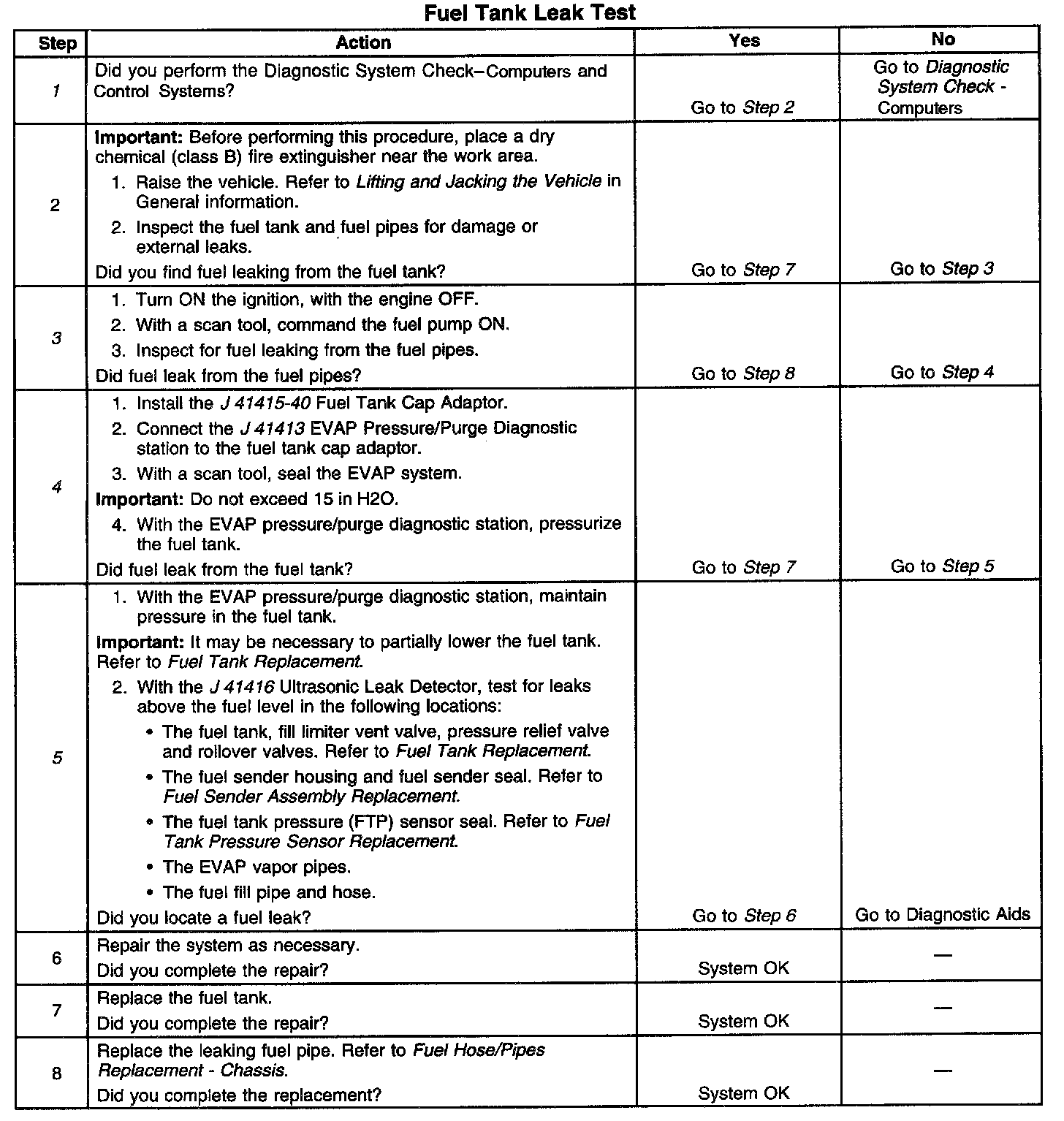 ^ Test for fuel vapor leaks in the following locations:
