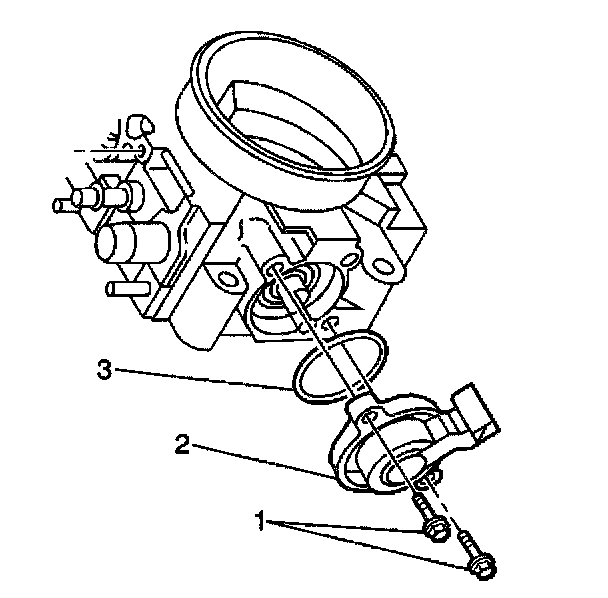 1. With the throttle valve in the normal closed position, install the throttle position sensor (2) and the seal (3) onto the throttle body assembly.