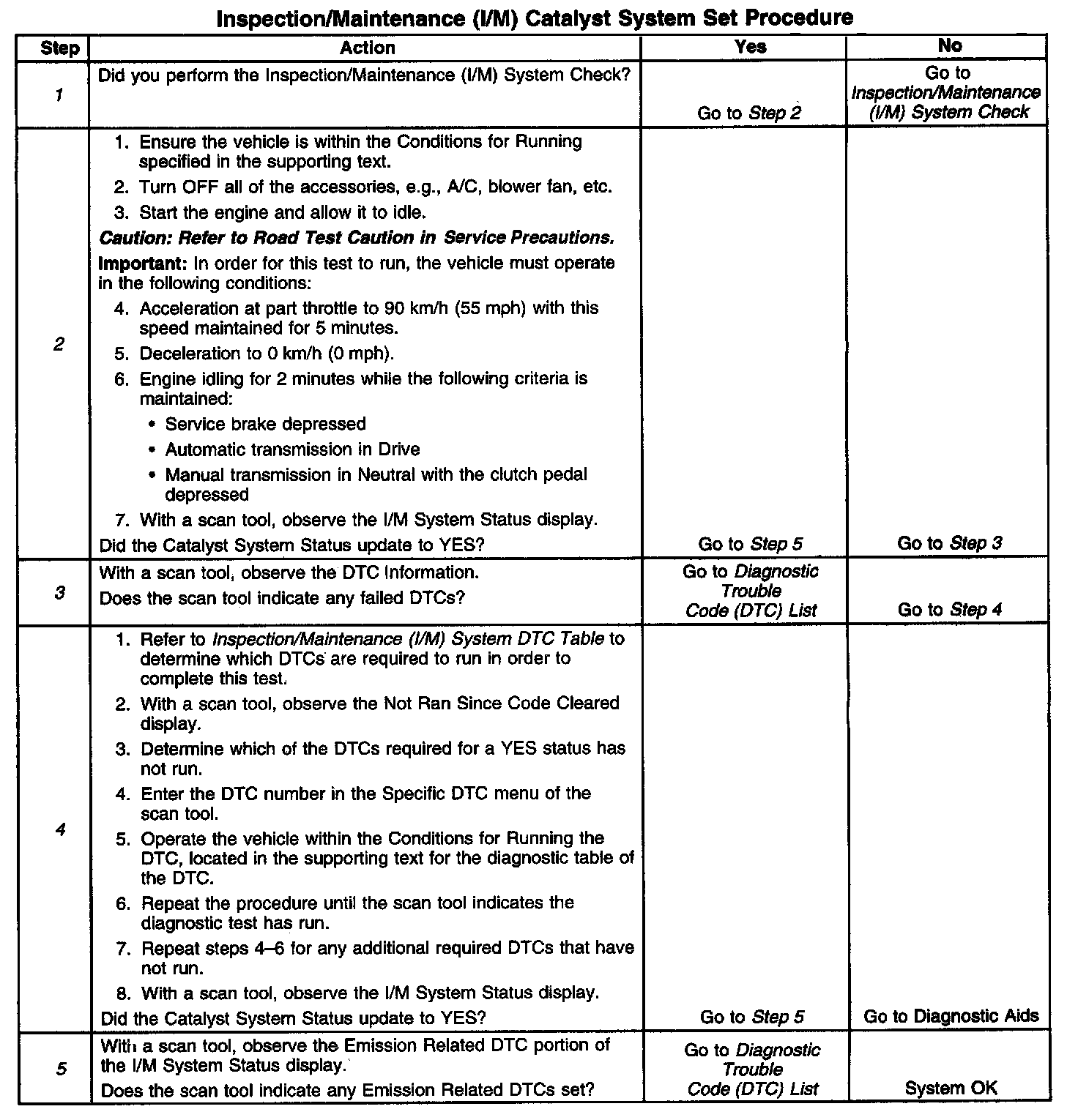 I/M Catalyst System Set Procedure