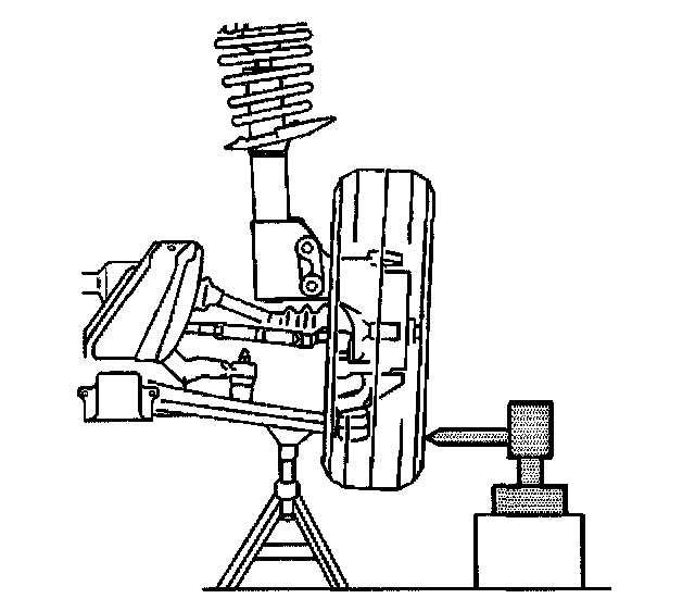5.1. Position the J 8001 dial indicator against the lowest outboard point on the wheel rim.