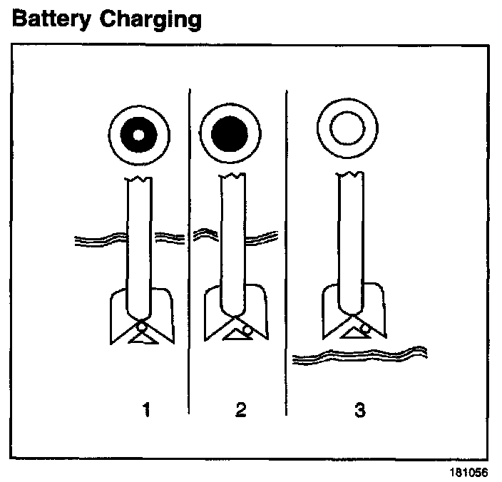 - Do not charge a battery when the built in hydrometer is clear or yellow in the center (3). Tap the hydrometer lightly in order to dislodge any air bubbles. The bubbles may cause a false indication. If the hydrometer is still clear or yellow, replace the battery.