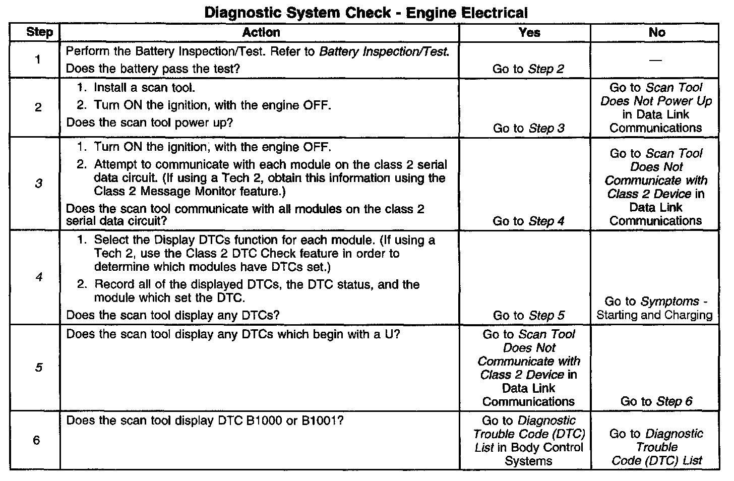 3. Lack of communication may be because of a partial malfunction of the class 2 serial data circuit or due to a total malfunction of the class 2 serial data circuit. The specified procedure will determine the particular condition.