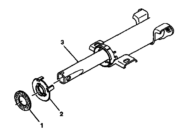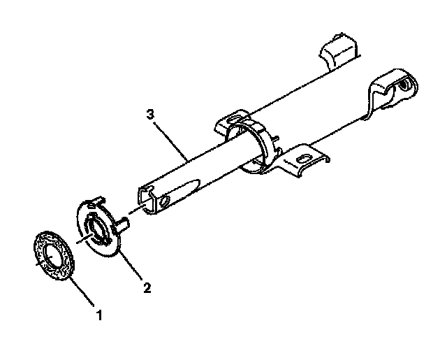 3. Remove the sensor retainer (2) from the end of the steering shaft assembly (3).