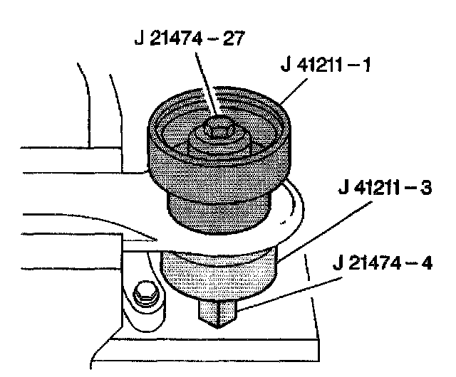 3. Tighten the J 21474-4 until the rear bushing is fully seated in the control arm.