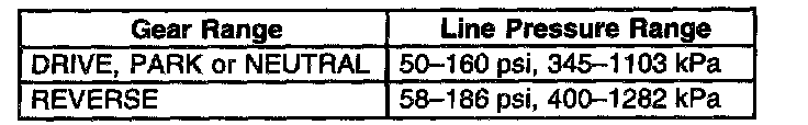Line Pressure Check ProcedureCaution: Keep the brakes applied at all times in order to prevent unexpected vehicle motion. Personal injury may result if the vehicle moves unexpectedly.