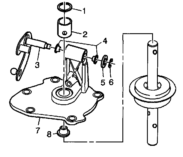 Important: Properly support the inner control lever (2) when installing the roll pin. Do not support the inner control lever (2) with the outer control lever.