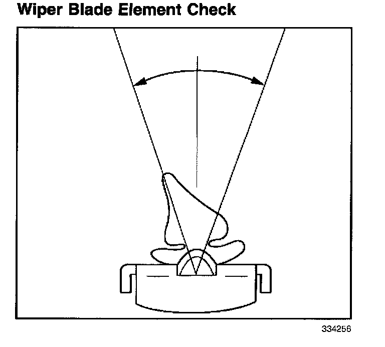 3. Replace the wiper blade element if the rubber element which contacts the glass is not on the centerline Of the blade +/-15 degrees. Refer to Wiper Blade Element Replacement.
