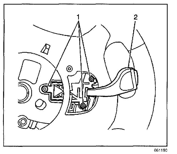 4. Remove the fasteners (1) retaining the switch (2) to the steering wheel.