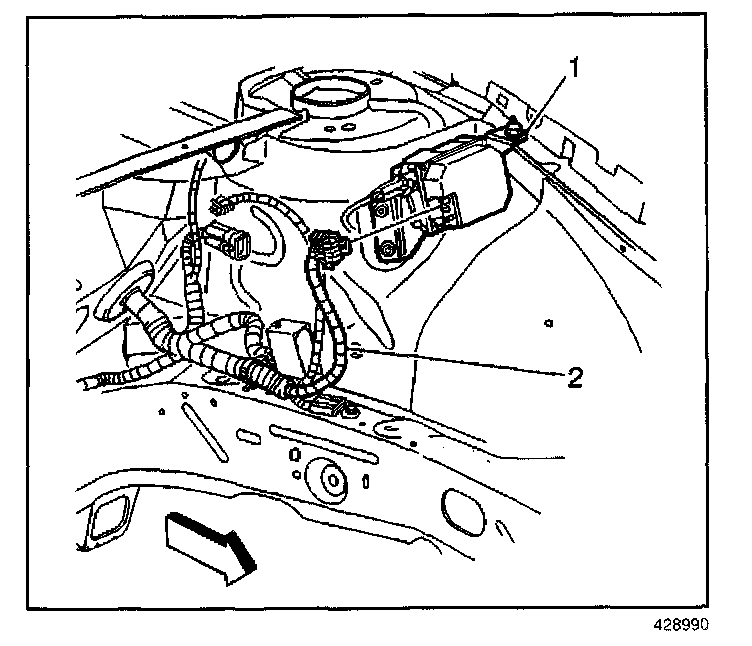4. Remove the cruise control module and bracket assembly (2) from vehicle.