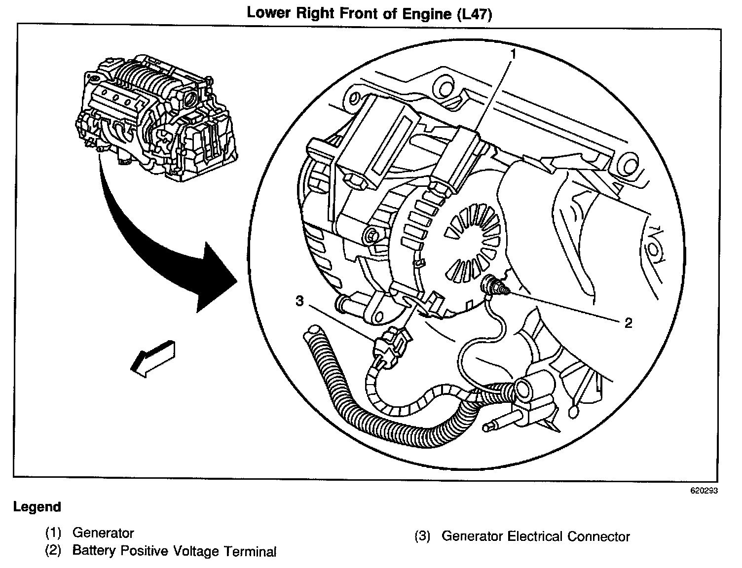 On the lower right front of the engine
