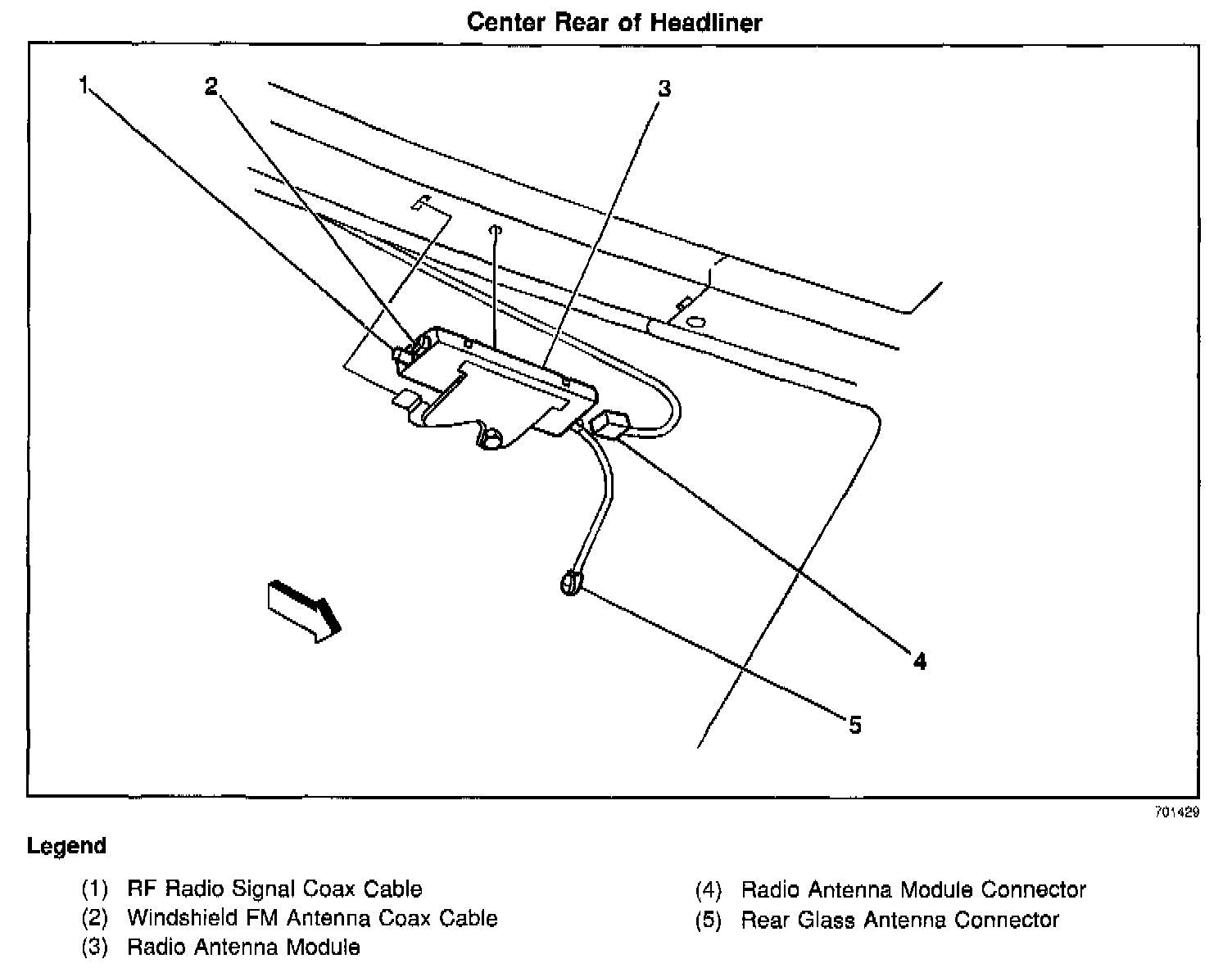 At the rear of the headliner, near the rear window