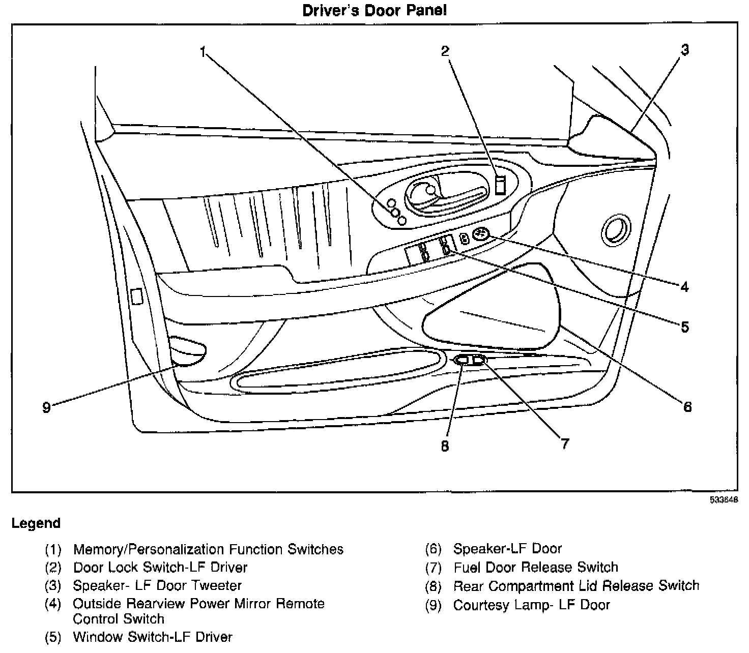 On the left front door trim panel