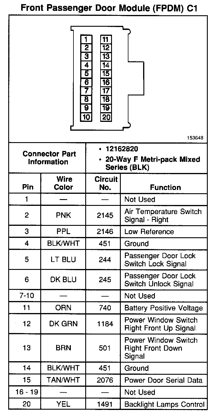 Front Passenger Door Module (FPDM) C1: