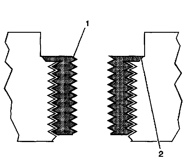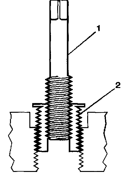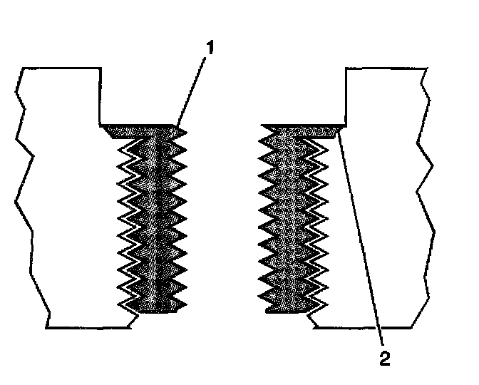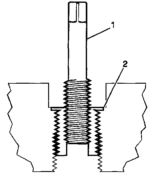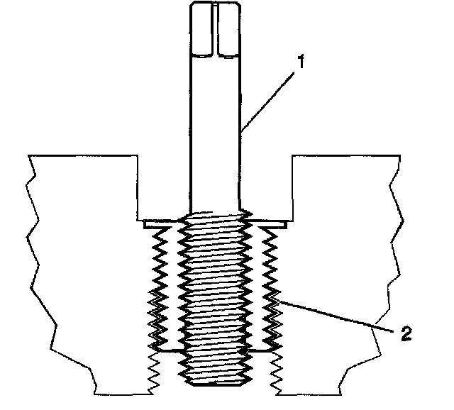 14. Inspect the insert (1) for proper installation (2) into the tapped hole.