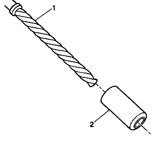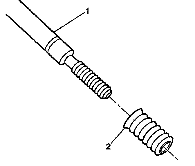 10. Apply threadlock sealant GM P/N 12345493, J 42385-109, LOCTITE 277 or equivalent (1) to the insert OD threads (2).