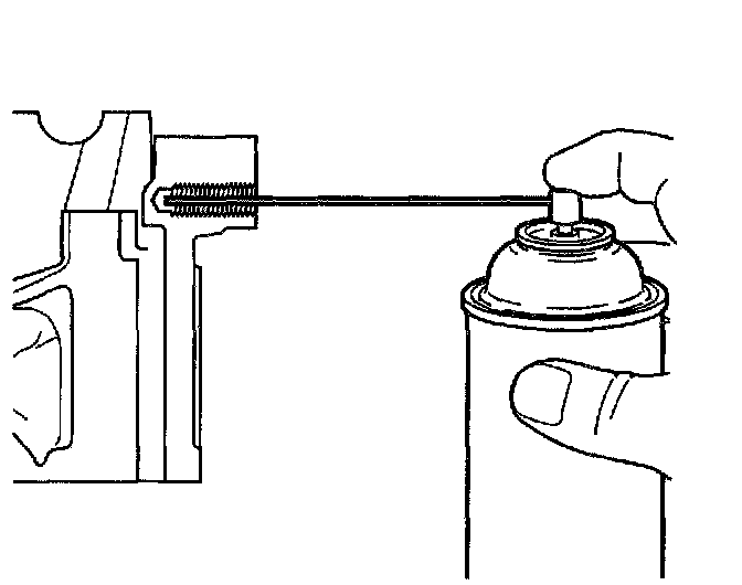 6. Spray cleaner GM P/N 12346139, P/N 12377981 or equivalent into the tapped hole.