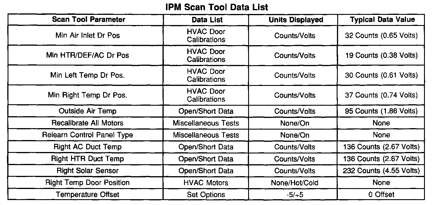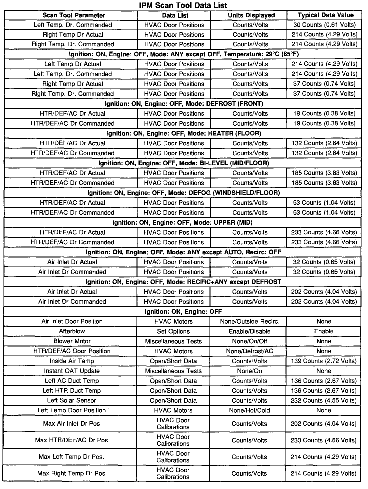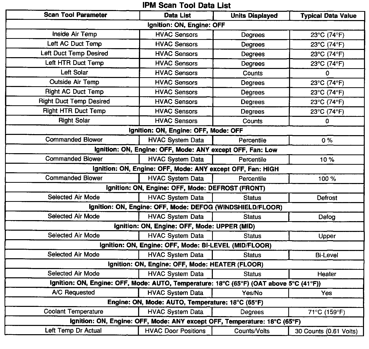 Scan Tool Data List - Instrument Panel Integration Module (IPM)
