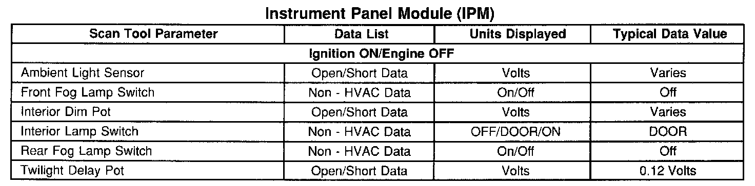 Scan Tool Data List - Instrument Panel Module (IPM)
