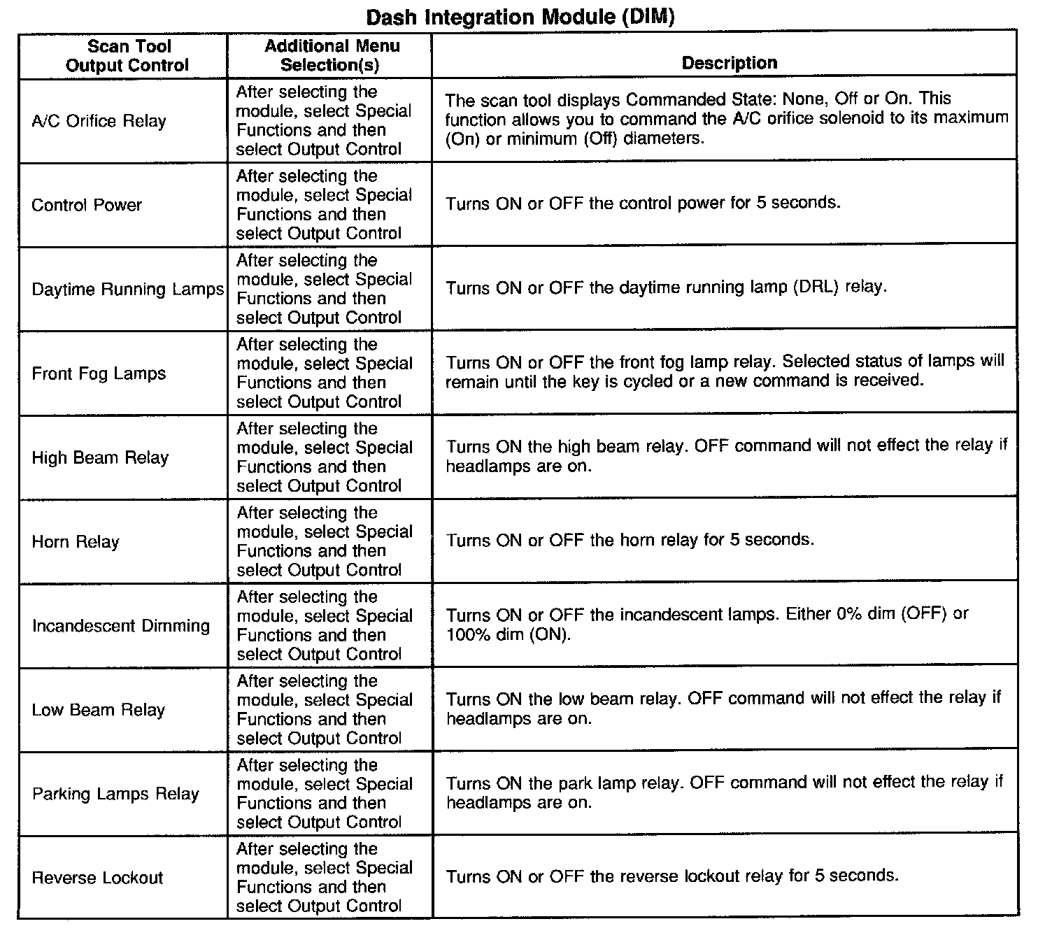 Scan Tool Output Controls