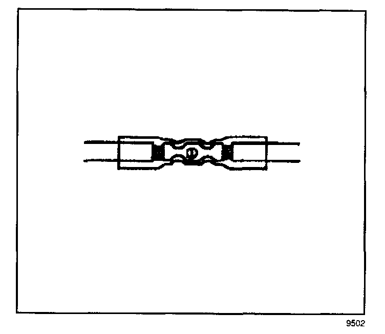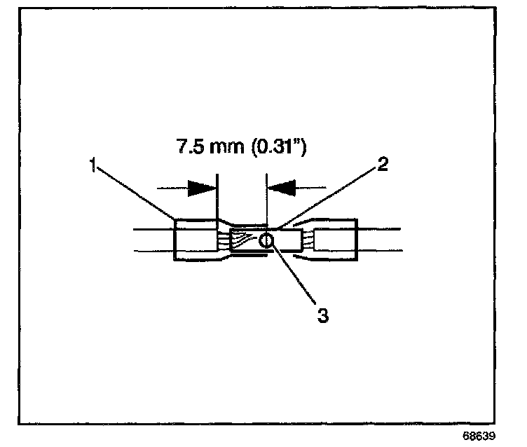6. Place the splice sleeve in the nest. Ensure that the crimp falls midway between the end of the barrel and the stop. The sleeve has a stop (3) in the middle of the barrel (2) in order to prevent the wire (1) from going further. Close the hand crimper handles slightly in order to firmly hold the splice sleeve in the proper nest.