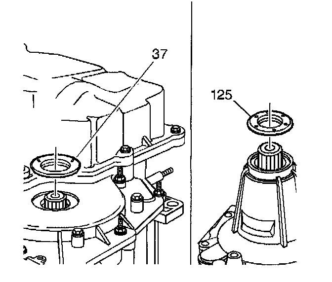 2. Remove the drive axle seal (125). First use a screwdriver to pry outer the seal from the transmission. Use pliers in order to remove the remaining housing of drive axle seal from the transmission.