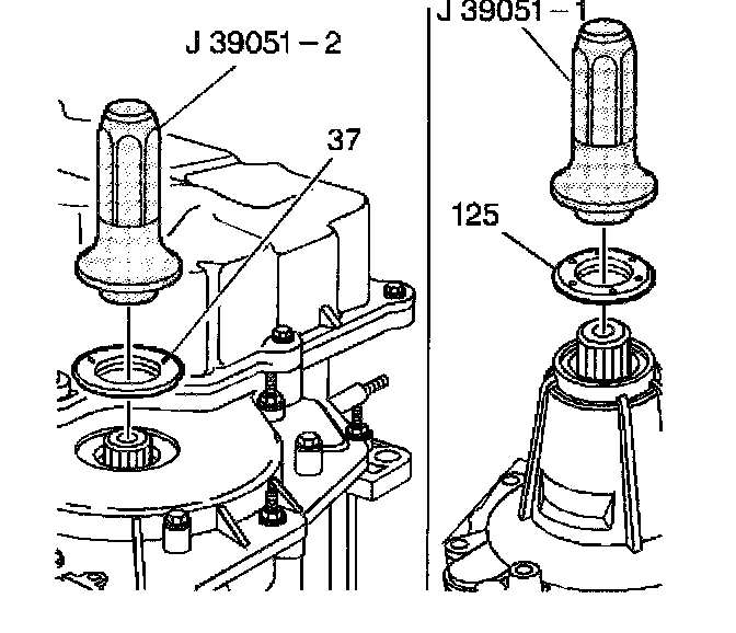 1. Install the right-hand drive axle seal (125) using the J39051-1