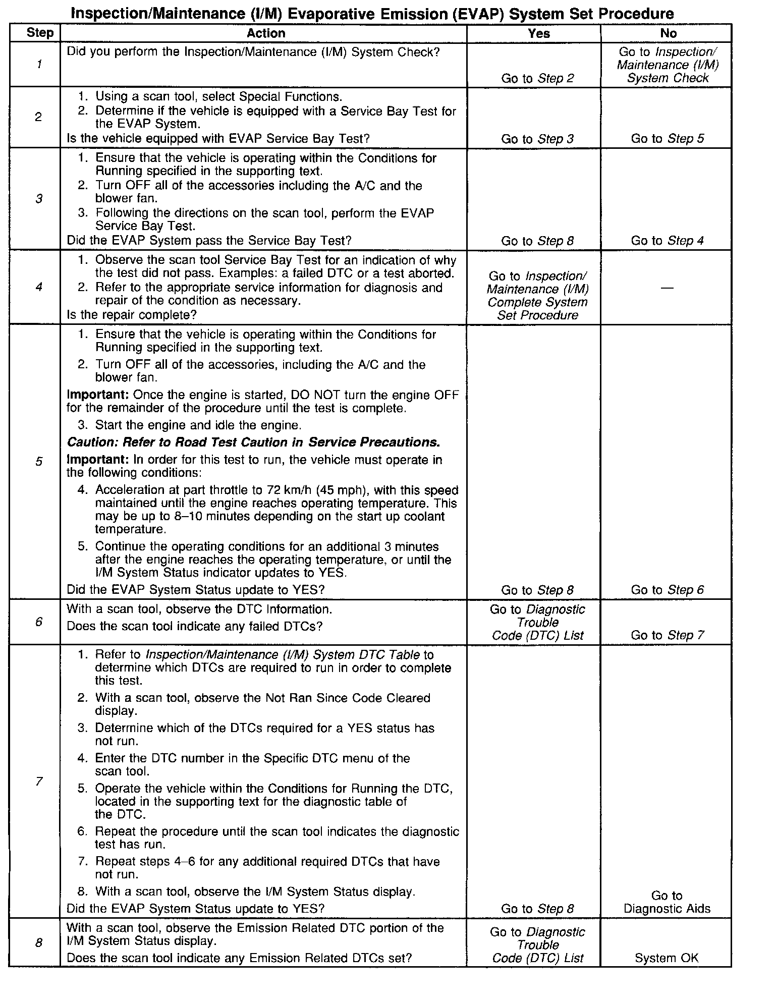 1. You must perform the I/M System Check before performing this test. Failure to do so may result in difficulty updating the status to YES. Inspection/Maintenance (I/M) System Check