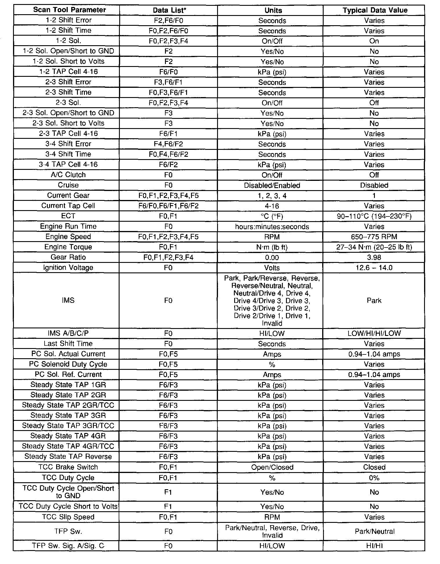 Transmission Scan Tool Data ListPart 1 of 2