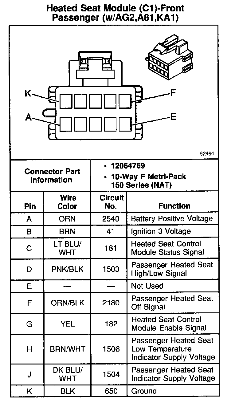 Heated Seat Module (C1)-Front Passenger (w/AG2,A81,KA1):