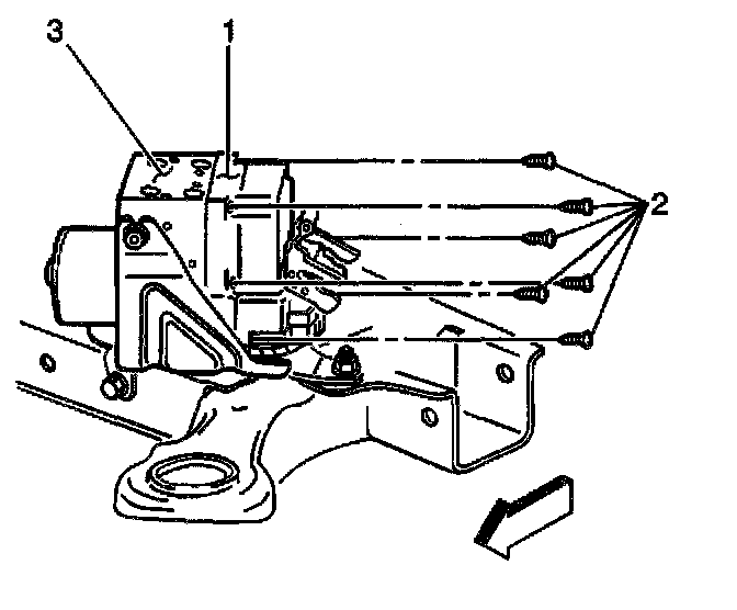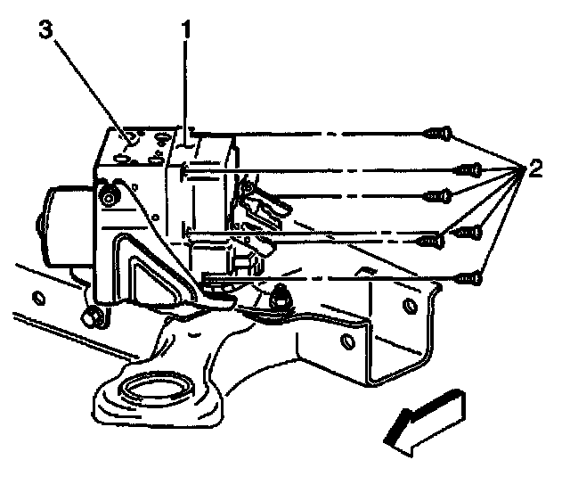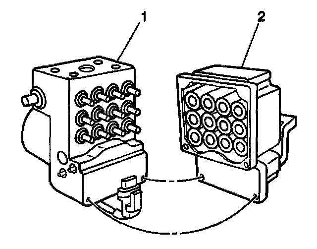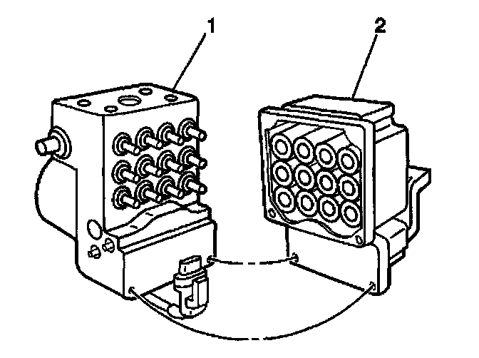 2. Install the Electronic Brake Control Module (EBCM) (2) to the BPMV (1).