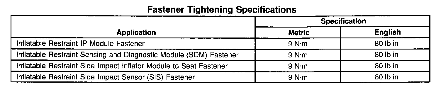 Fastener Tightening Specifications: