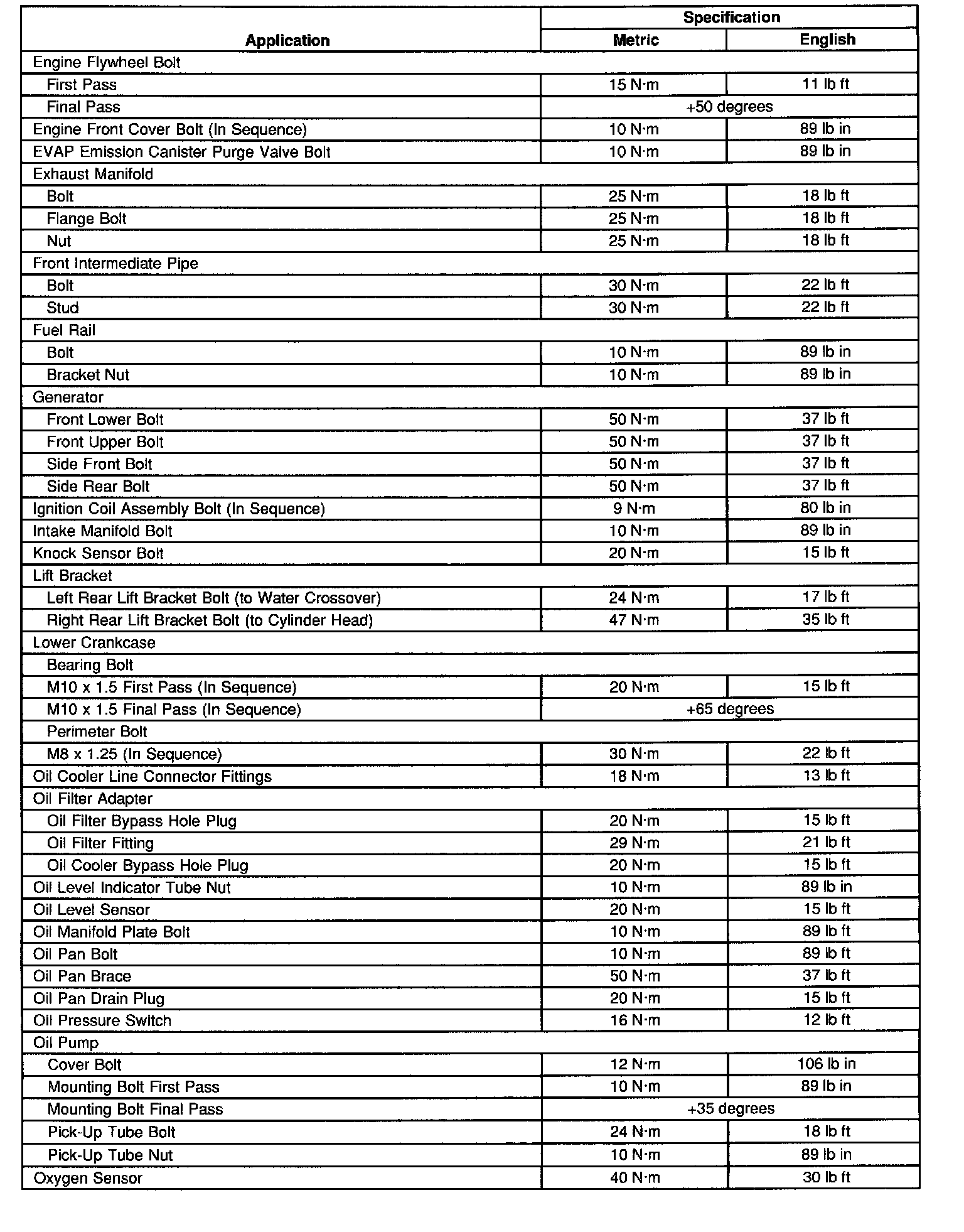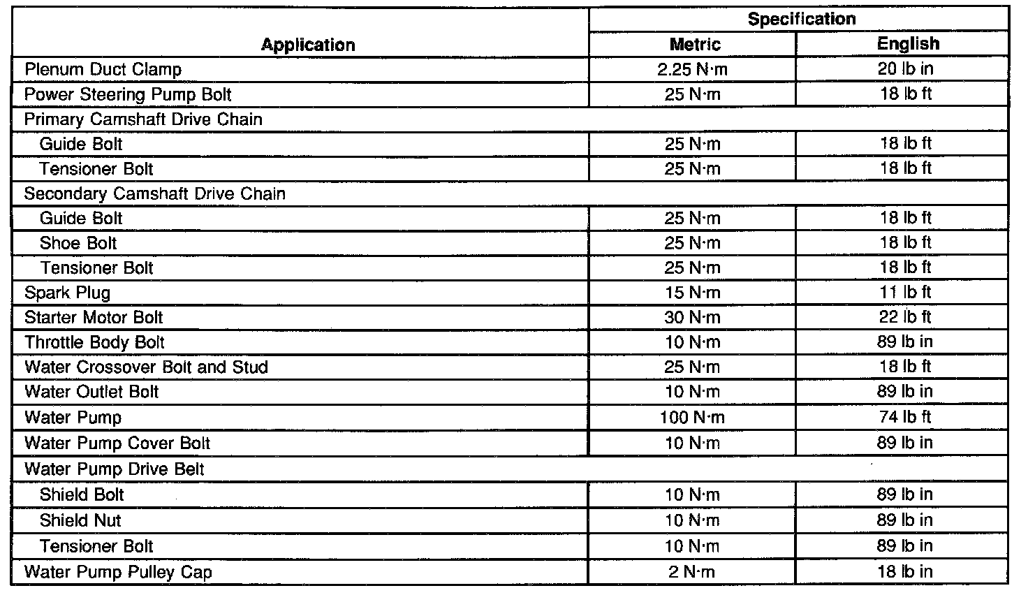 Fastener Tightening Specifications