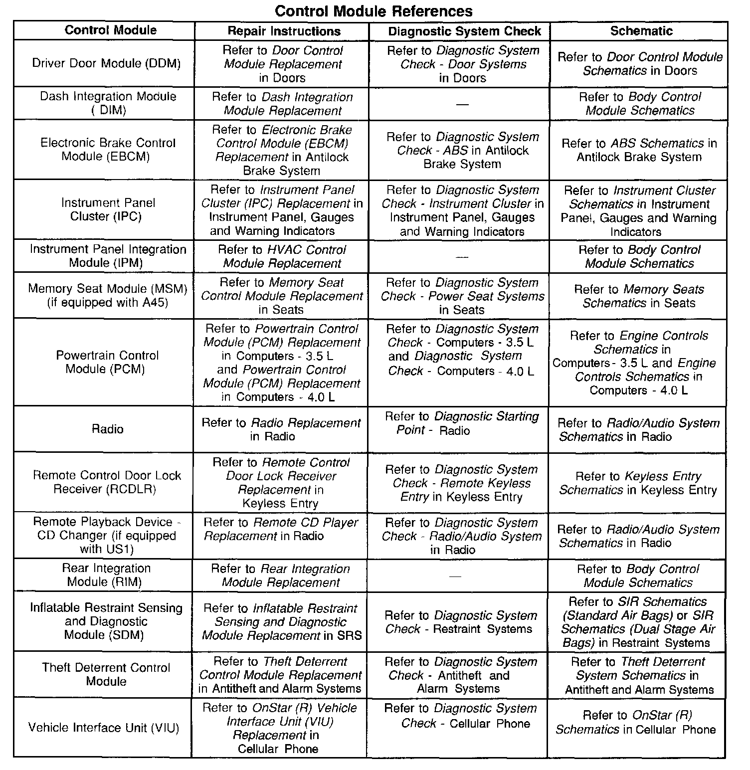 Control Module References