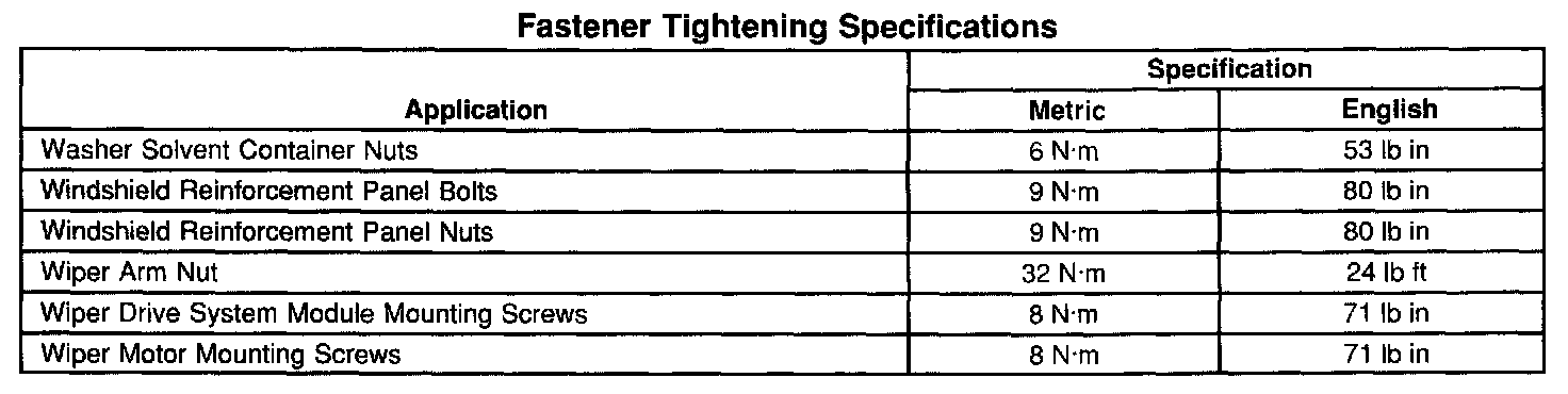 Wiper and Washer Systems: Specifications