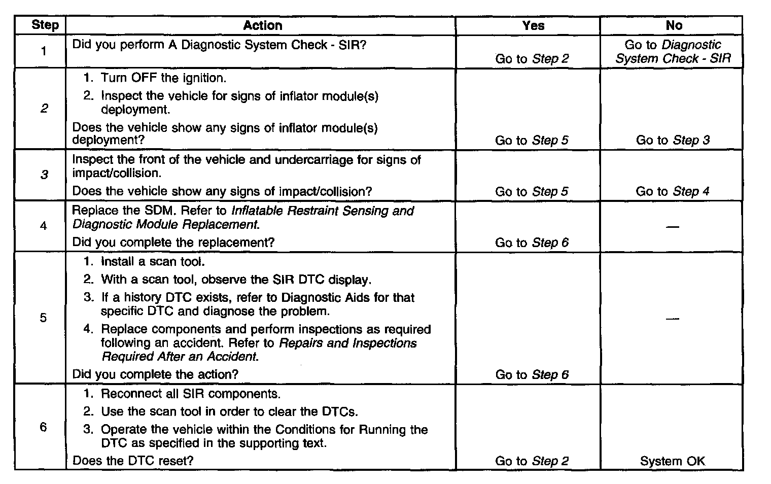 2. Tests for inflator module(s) deployment. If the inflator module(s) did not deploy, DTC B0053 may have set falsely.
