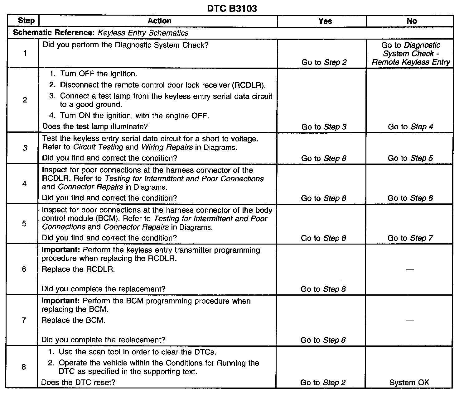 3. This step checks for a short to voltage in the keyless entry serial data circuit.