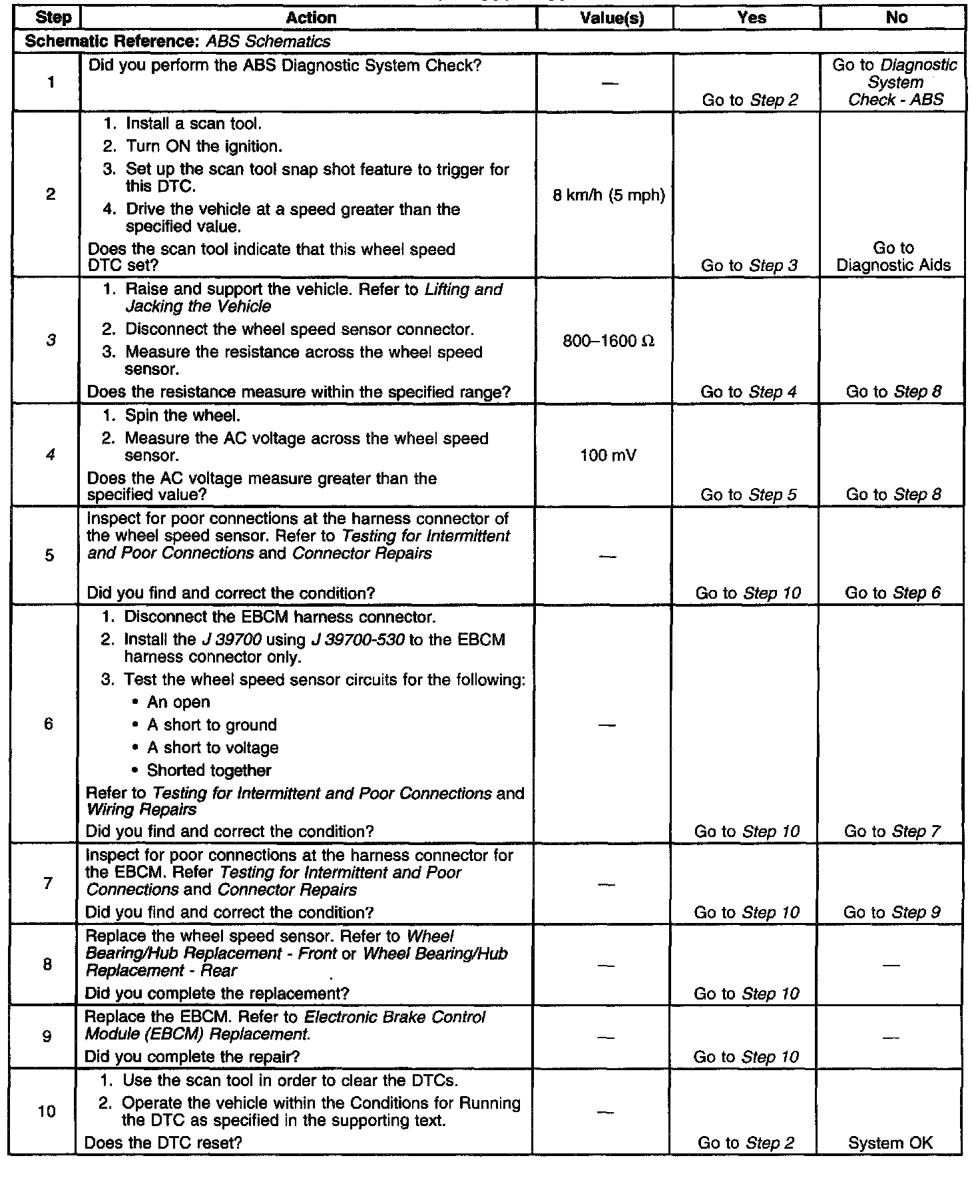3. This step tests the wheel speed sensor for the proper resistance value.