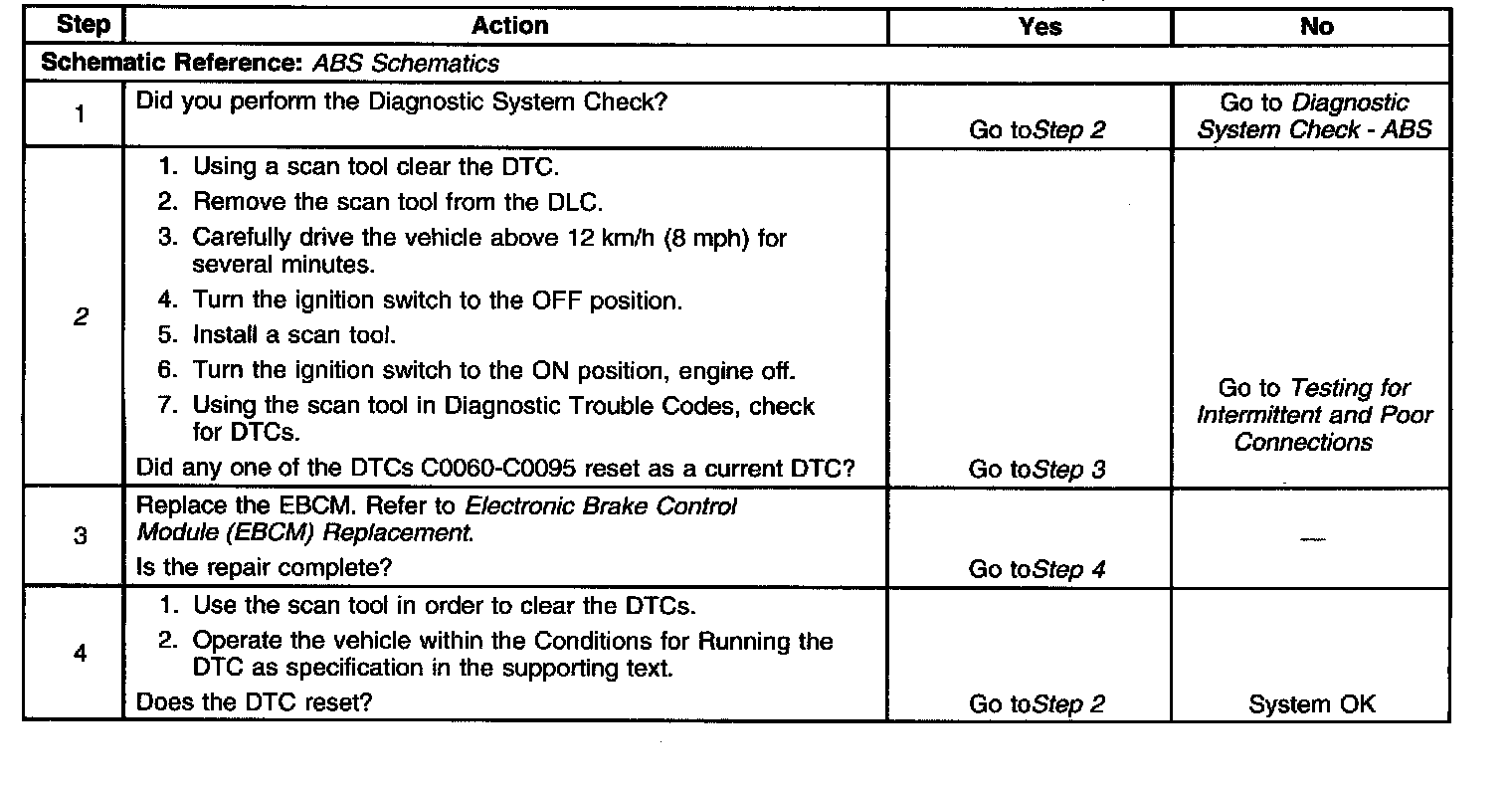 ^ The DTC can set when the vehicle speed is greater then 15 Km/h (9 mph) and the brake pedal is applied.