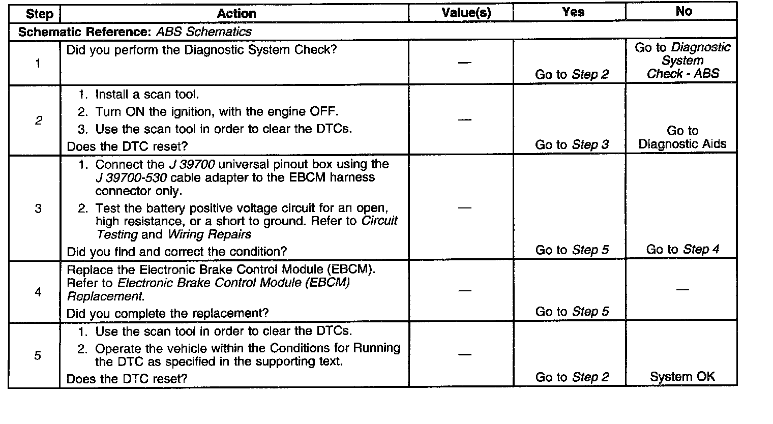 ^ The EBCM automatically clears the history DTC when a current DTC is not detected in 100 consecutive drive cycles.