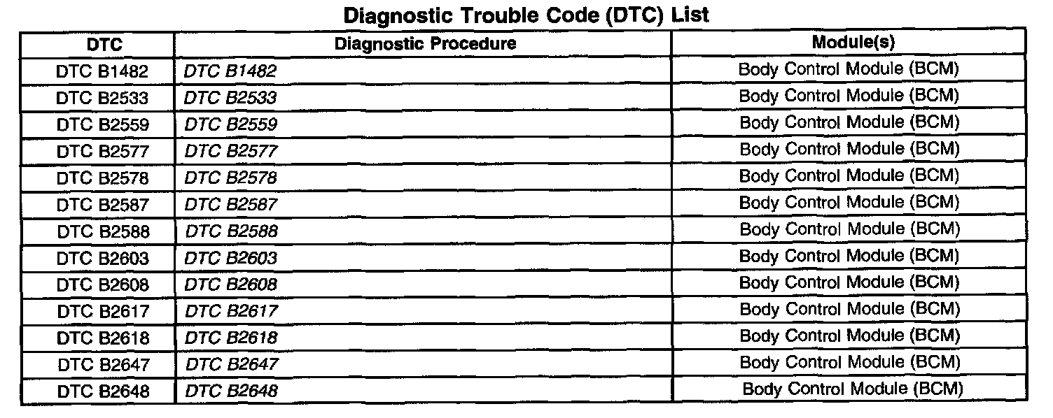 Diagnostic Trouble Code (DTC) List: