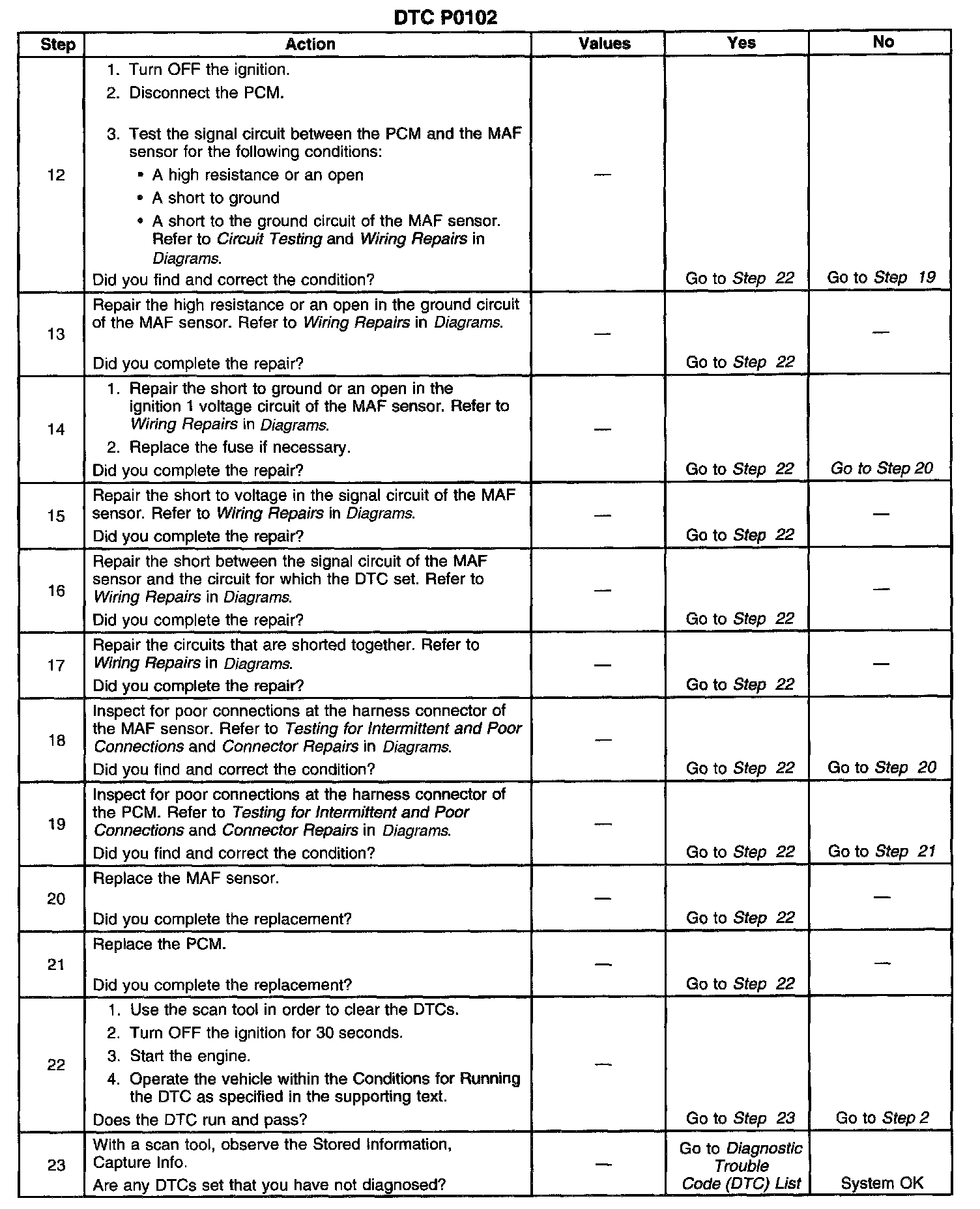 ^ Any unmetered air entering the engine may cause this DTC to set. Inspect for vacuum leaks anywhere downstream of the MAF sensor.