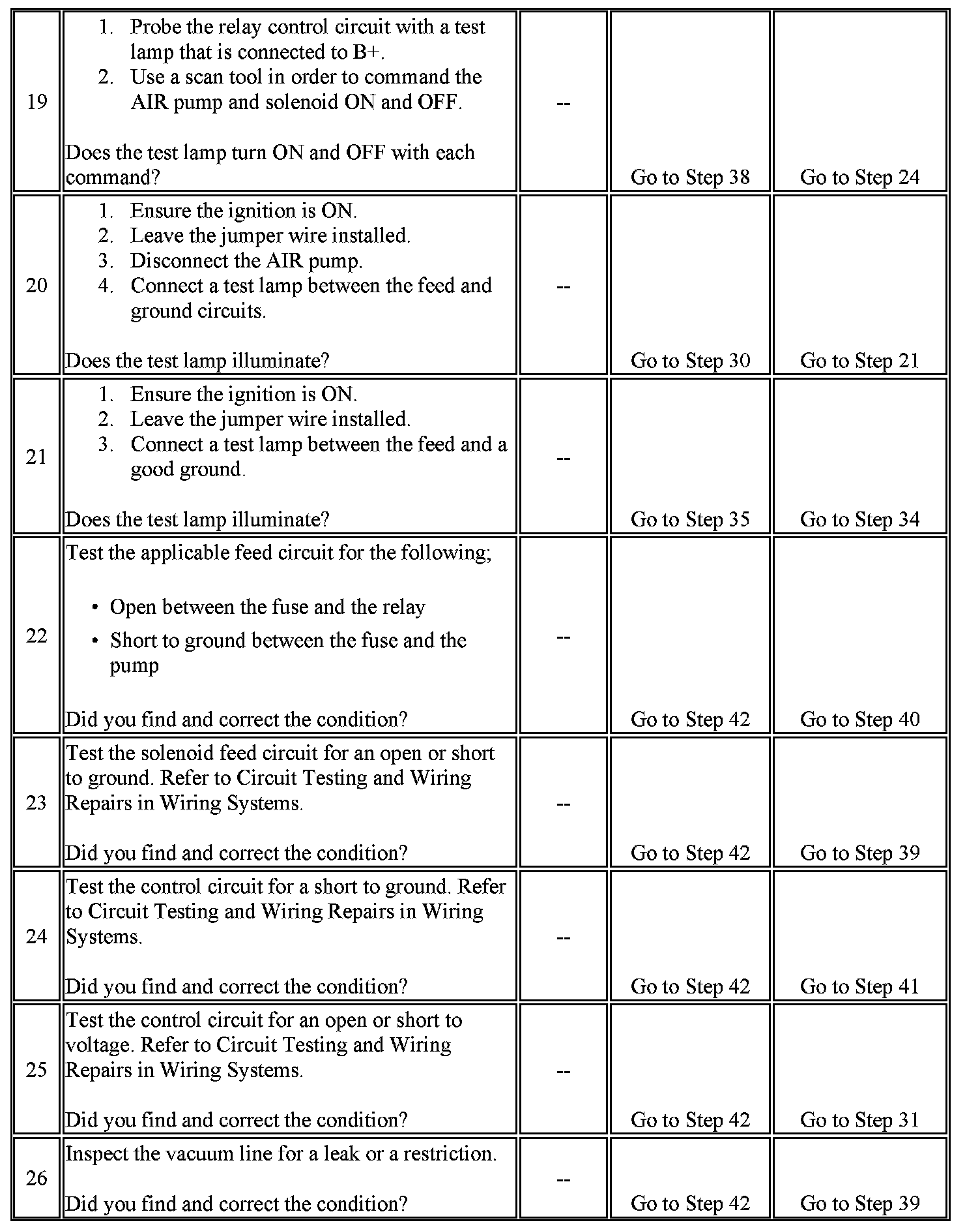 19. This step tests the control circuit for operation.